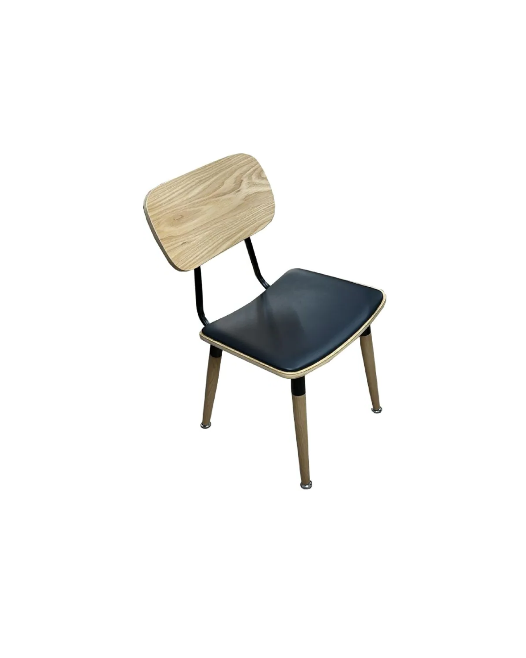 Chaises en bois et métal avec assise en similicuir noir